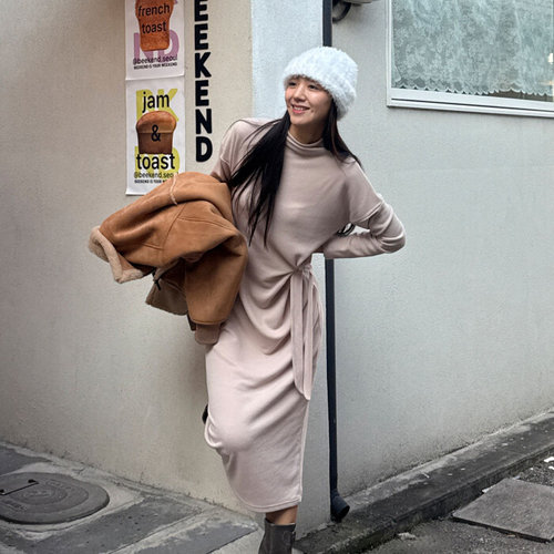 에르디테 / 기모 매듭 목폴라 하이넥 루즈핏 이너 레이어드 롱원피스 2컬러