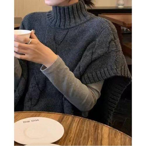[예쎄](예쎄) 오버핏 레이어드 터틀넥 숄 니트 스웨터(S5FKN045A)