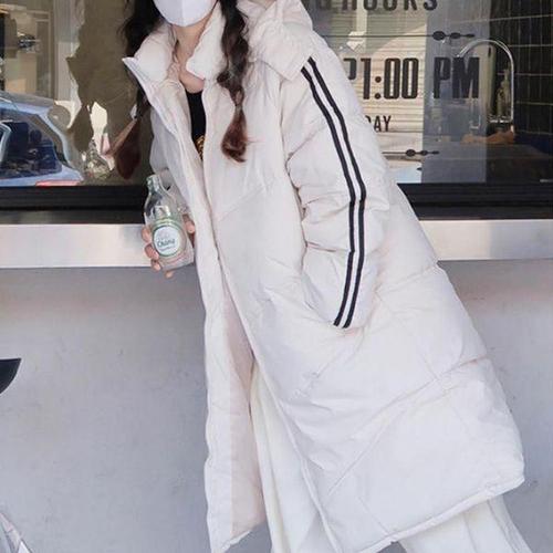 [에이치플러스몰]여자 아이보리 롱패딩 밝은색 잠바 오버핏 롱점퍼
