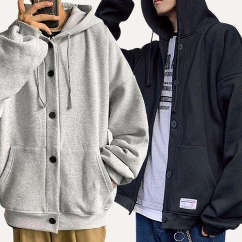 1+1 남자 심플 긴팔 후드티 맨투맨 오버핏 무지 후드집업 빅사이즈 트레이닝복 기모 두꺼운 데일리 캐주얼 상의 루즈핏 학생 아우터 상의
