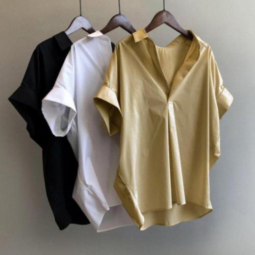 브이넥 루즈핏 반팔 블라우스 데일리 오피스룩 셔츠