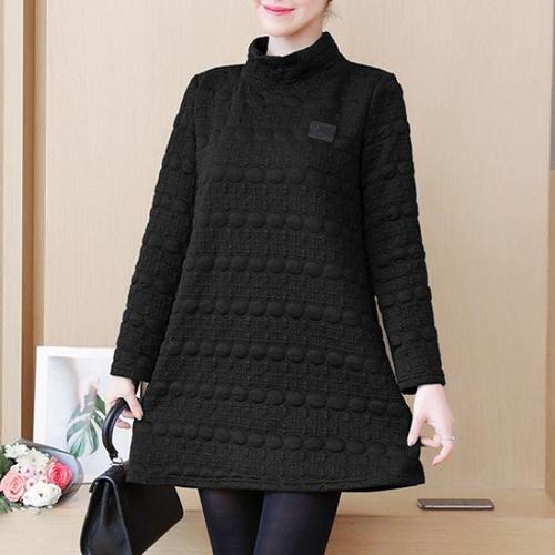 [엄지척]F90403 루즈핏 엠보 미니 폴라 하이넥 원피스 롱티_19872680_667501