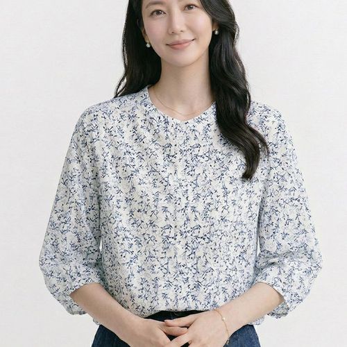 NB3127 여리여리 플라워 패턴 루즈핏 7부 블라우스