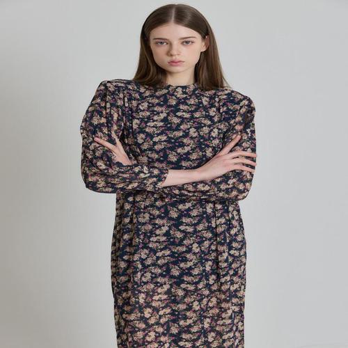 [오조크][오조크(OZOC)] 반넥 숄더포인트 플라워 원피스 (택가격 79000원)