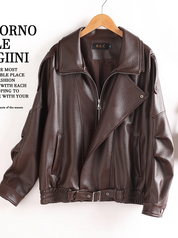 Ning 정품 가죽 자켓 여성용 양가죽 코트 루즈 캐주얼 바이커 자켓 가을 새로운 스타일 지퍼 반팔