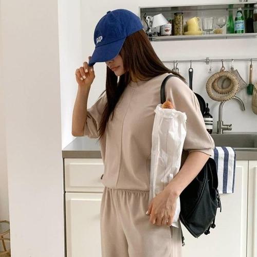 [다잇템][다잇템] 여자 절개라인 츄리링바지 하프소매 반소매티 민무늬 세트_20343347_588872