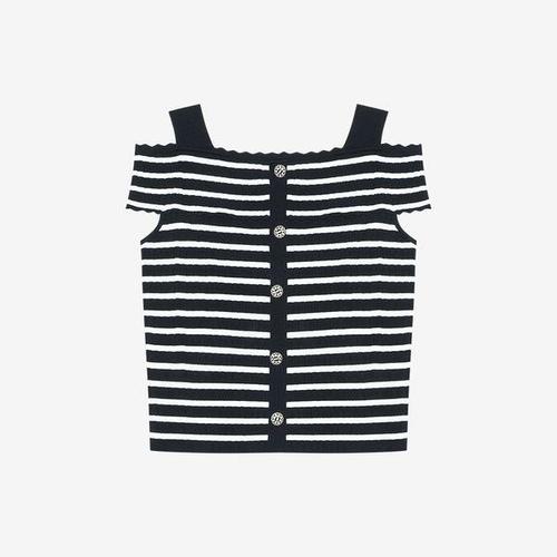 [신원아울렛]오프숄더 배색 니트 탑 BKUCE2930 B