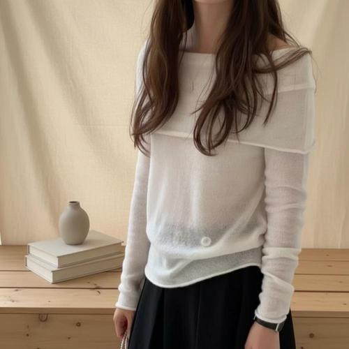 [옷자락] 여성 여리핏 시스루 오프숄더 니트