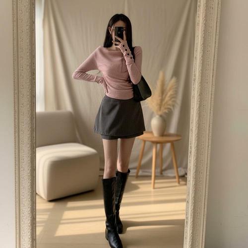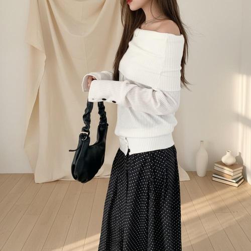 [옷자락] 여성 여리핏 오프숄더 골지 니트 데일리룩