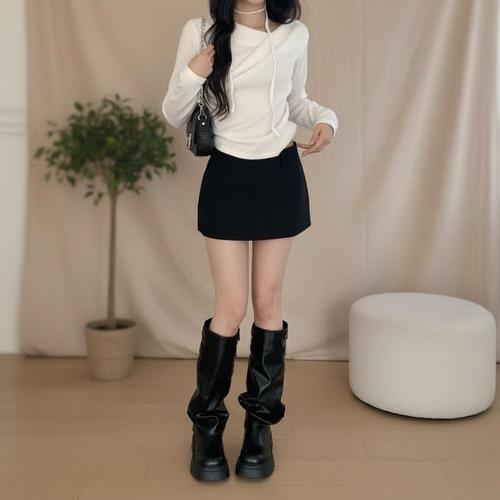 타니즈 스코렌 원오프숄더 단가라 무지 긴팔 니트