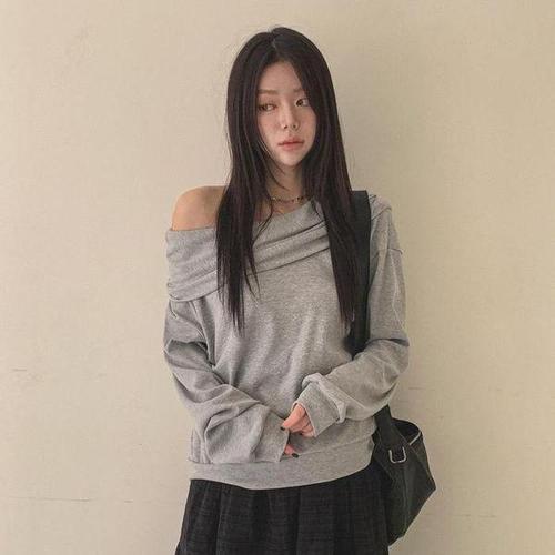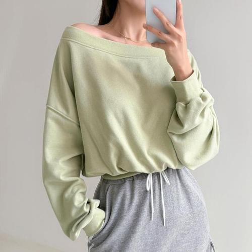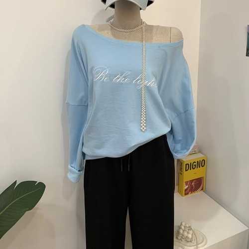 [옷자락] 여자 봄가을 여리핏 루즈 오프숄더 긴팔 맨투맨