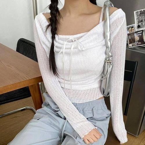 [셀러허브_여성트랜드패션]Rly 맨투맨 레이어드코디 오프숄더 크롭티셔츠 간절기