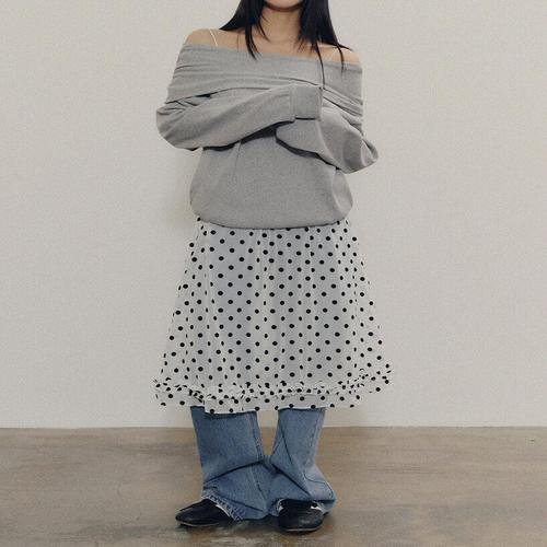 플러리싱 / 심플 면혼방 오프숄더 트임 맨투맨 플러리싱