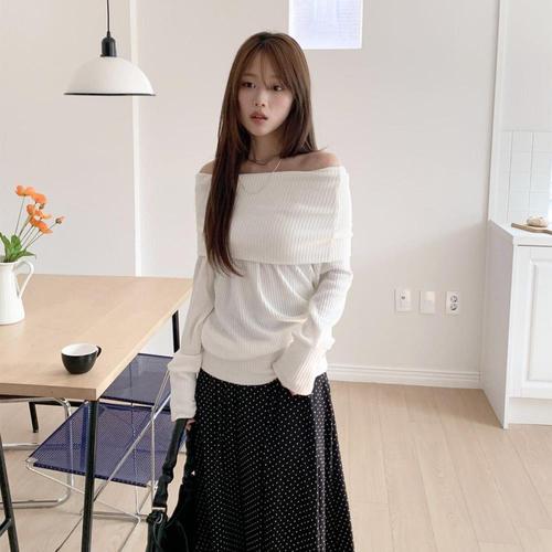[옷자락] 여자 데일리 여리핏 오프숄더 니트 맨투맨