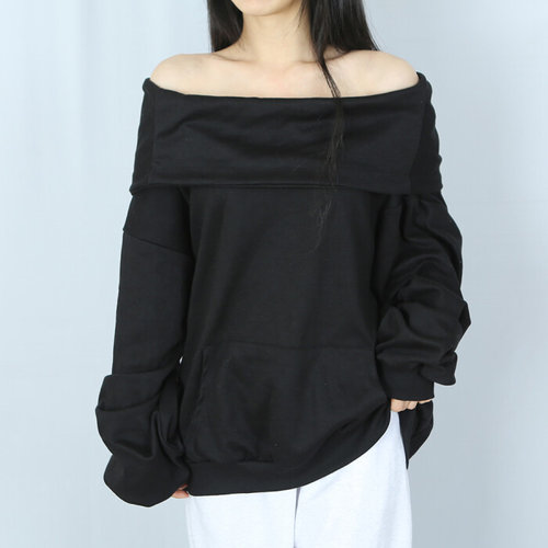 플러리싱 / 오프숄더 보트넥 앞포켓 맨투맨 플러리싱