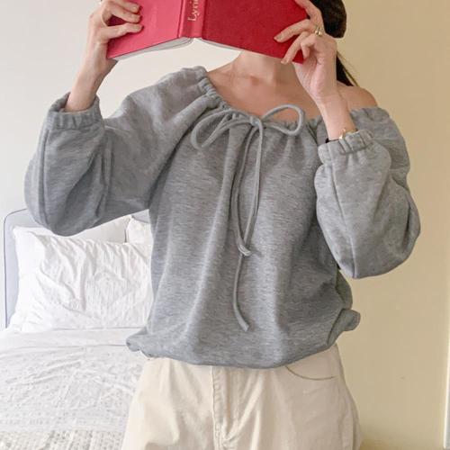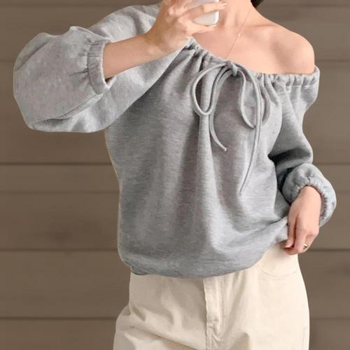 [옷자락] 여성 기모 오프숄더 리본 퍼프 맨투맨 오버사이즈