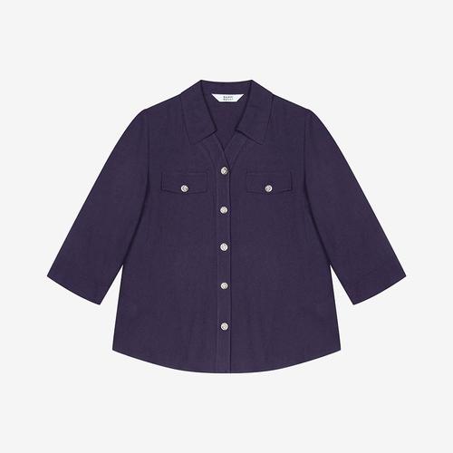 [빈폴멘]리넨 혼방 솔리드 오픈카라 반소매 셔츠 - 네이비 (BC5465C28R)