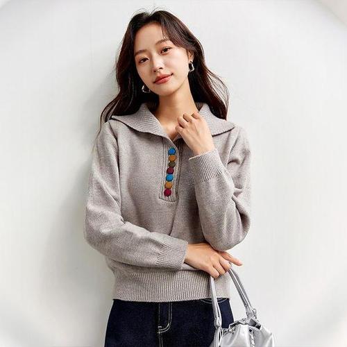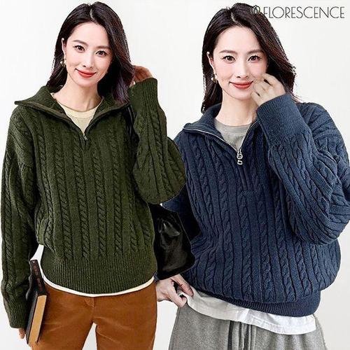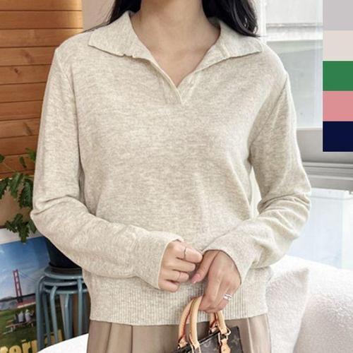 [에이치플러스몰]오픈 카라넥 여자 포근 울 니트 웨어 30대 출퇴근룩