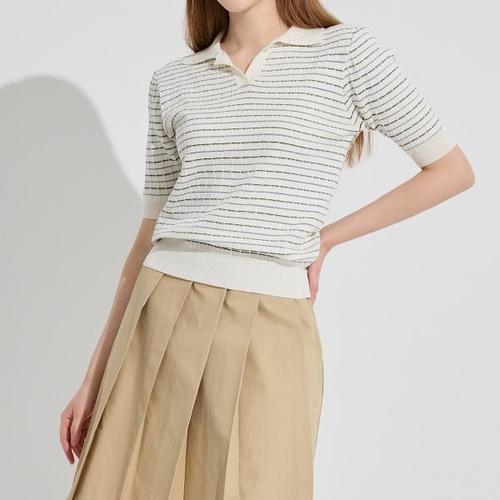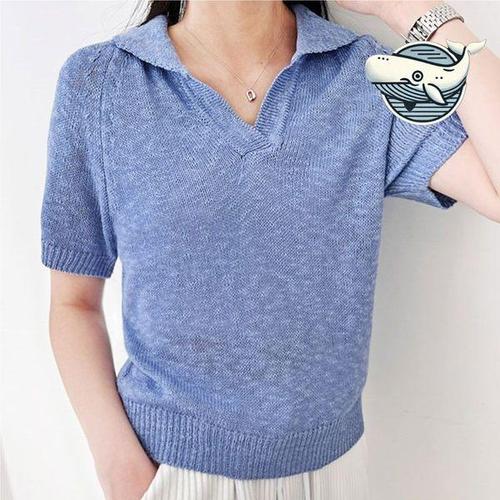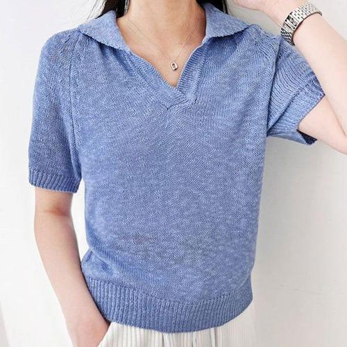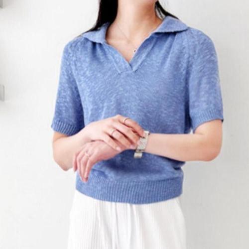 [에이치플러스몰]여성 여름 데일리 캐주얼 오픈 카라 반팔 니트