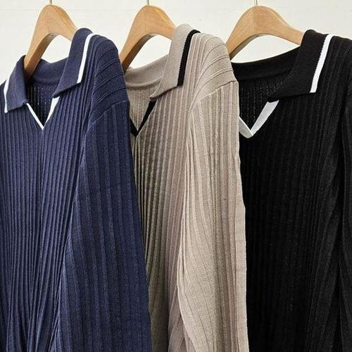 [체이스컬트][본사][2color] 남자 쿨터치 오픈카라넥 여름니트
