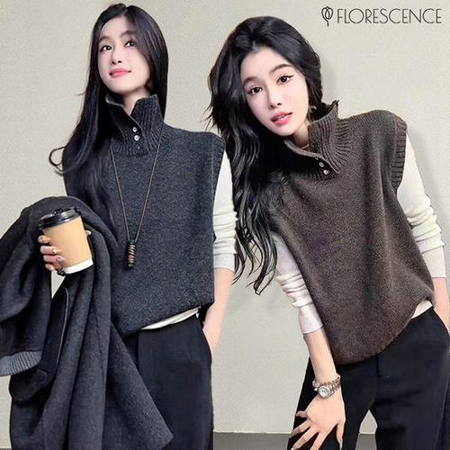 [헬리꽁땡](55~77)2종세트 오픈단추하이넥니트베스트 겨울조끼 겨울베스트 겨울니트 니트티 브이넥 카라..
