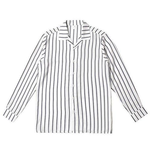 [에이치플러스몰]여유핏 오픈카라 스트라이프 남자셔츠 꾸안꾸 감성룩