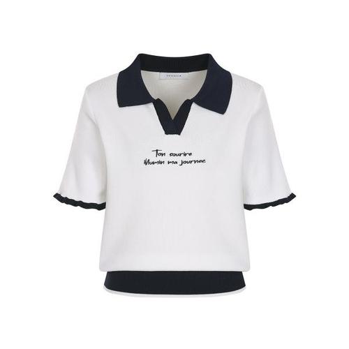 [에이치플러스몰]여름 오픈 카라 브이넥 반팔 니트 티셔츠