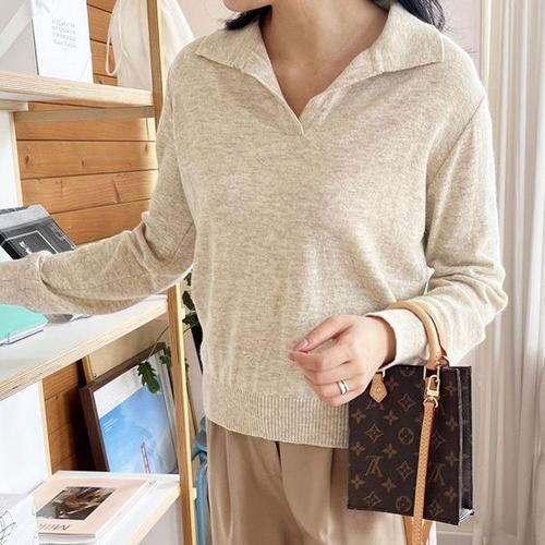 [에이치플러스몰]여성 오픈카라 울 니트티 1P 사계절 스웨터 출퇴근룩