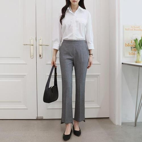 [다잇템]여자 슬릿 오피스룩 언발 나팔 정장바지 팬츠 (13030555A)