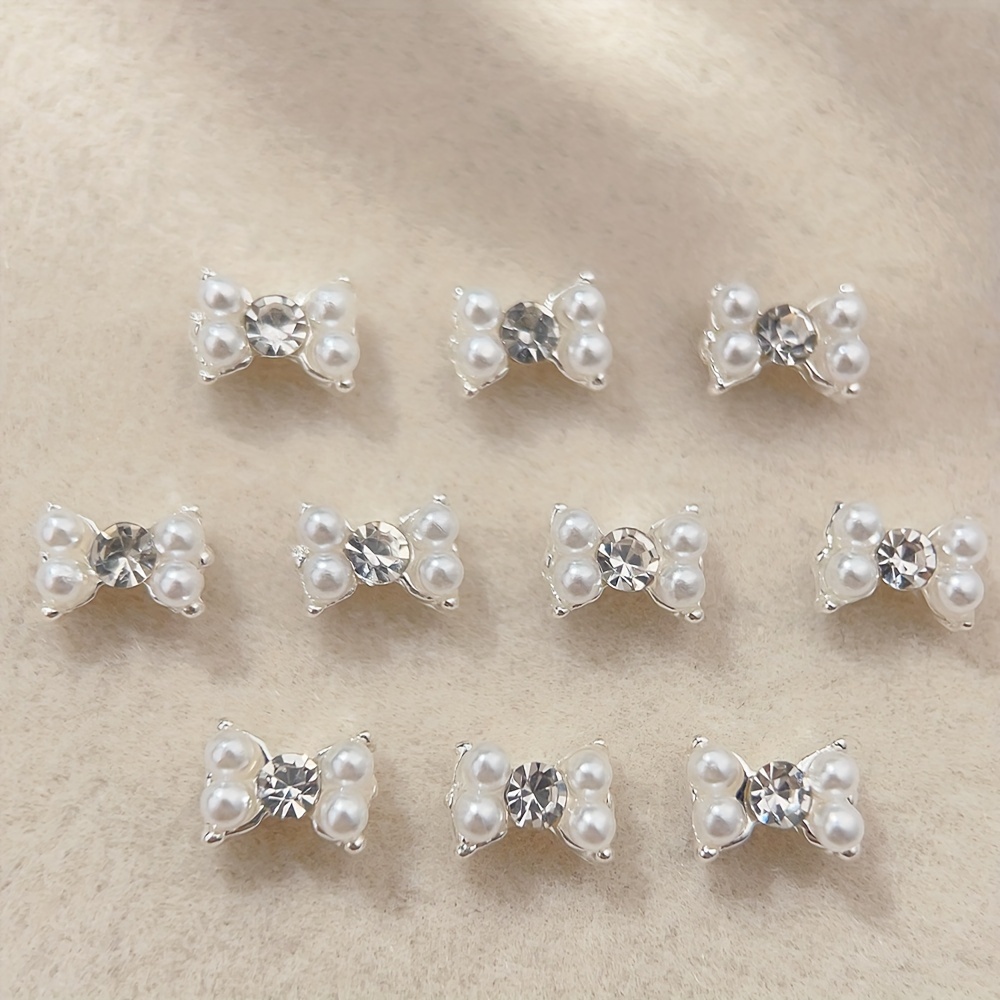 TEMU 10개 세련된 진주 & 라인스톤 리본 네일 참 - 합금 DIY 네일 아트 장식, 무취 매니큐어 액세서리