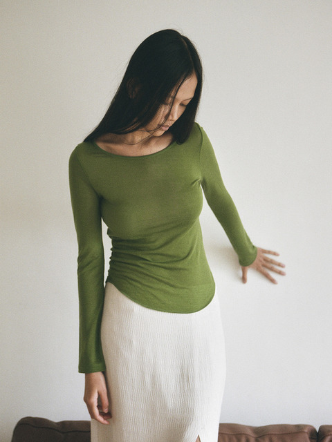 [토콜] 라운드 세미 쉬어 탑 - 올리브 그린