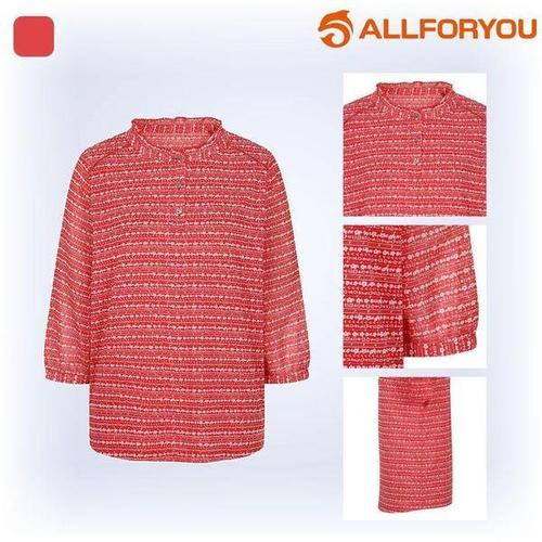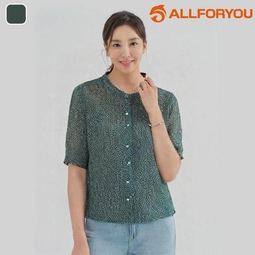 [올포유]여성-요꼬에리와 어깨 시보리 포인트 냉감 소매 프린트 반집업 티셔츠-WTPO2161