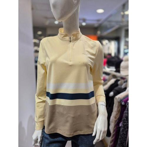 [올포유]여성-활동성 좋은 폴리스판 소재 스트라이프 패턴 반집업 간절기 티셔츠-WTHO2181
