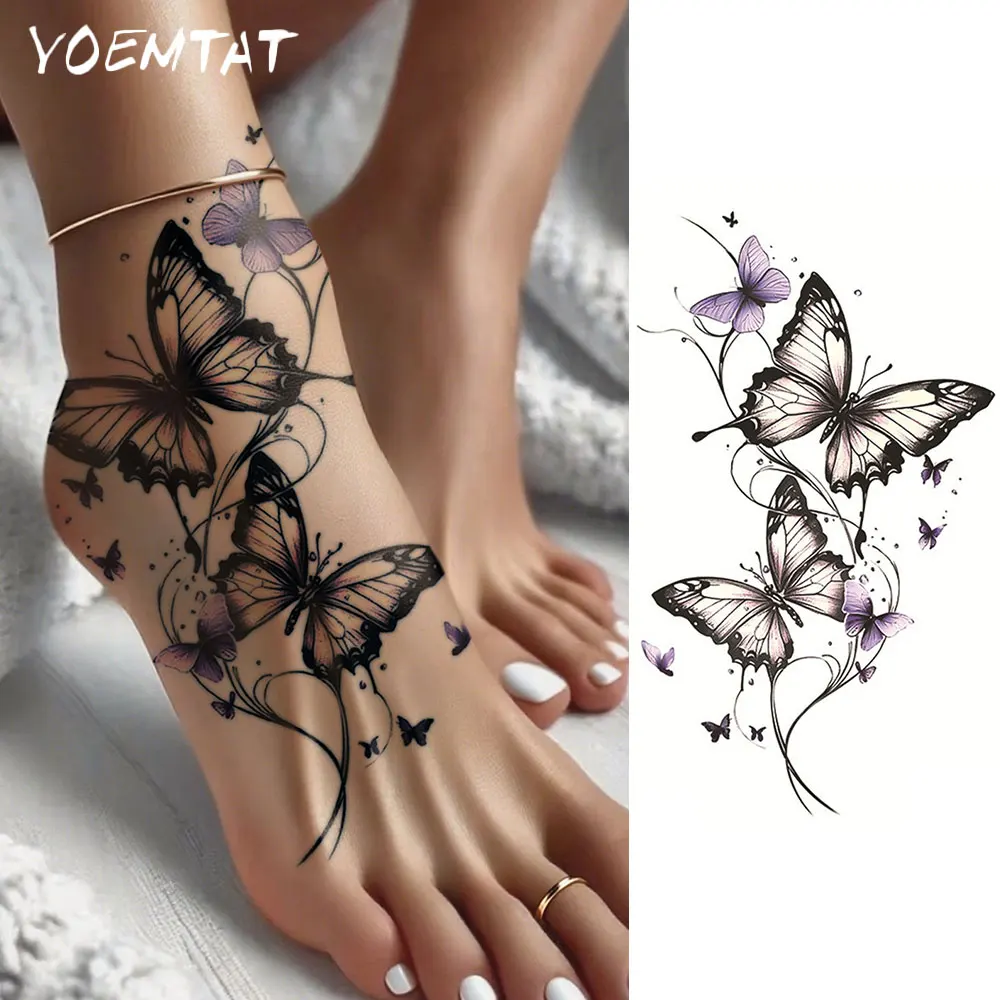 방수 임시 타투 스티커 나비 꽃 라인 패턴 바디 아트 팔 가짜 타투 슬리브 여성 남성 손 어깨용