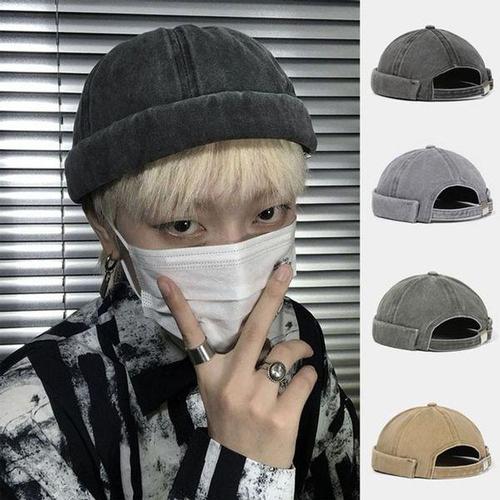 [에이치플러스몰]아메카지룩 빈티지룩 숏비니 워싱면 모자 데님 와치캡