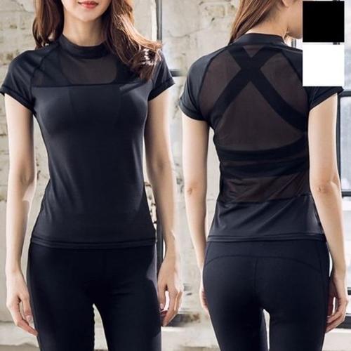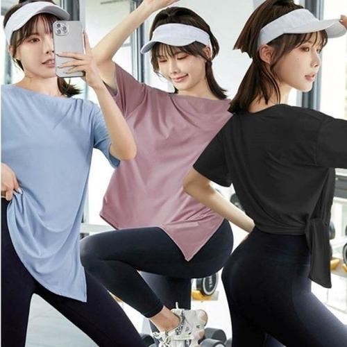 [엄지척]여성 필라테스 요가탑 트임 상의 반팔 티셔츠 스판티_20389771_667501