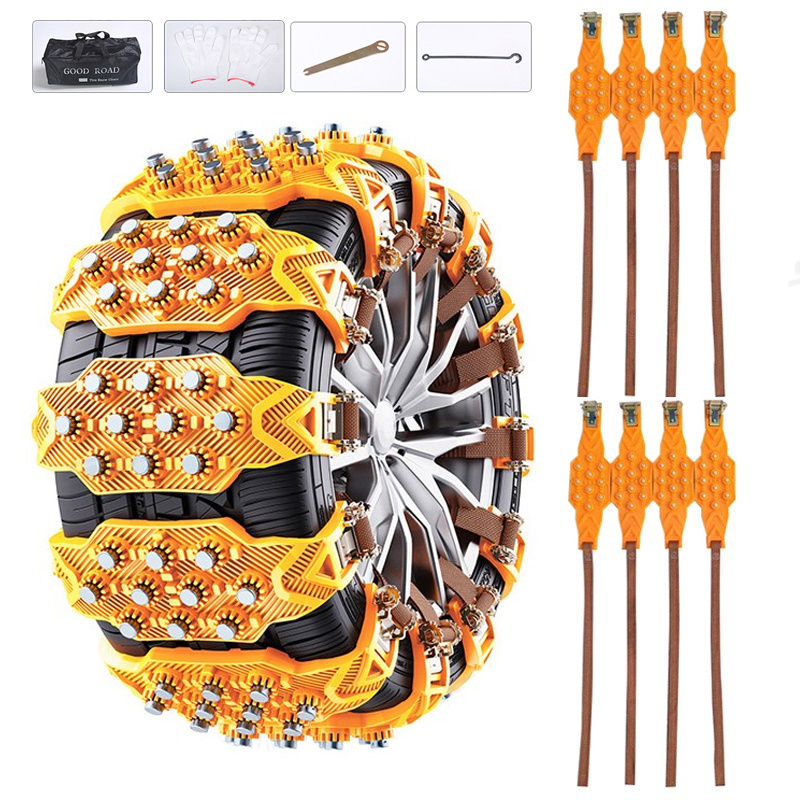 TEMU 8개 스노우체인 + 3가지 도구 + 1개 전용 가방, 간편설치 반복사용 고강도 차량용 우레탄 스노우체인 세트