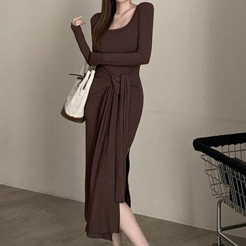 [디어로우]카디루 타이 디테일 롱 원피스