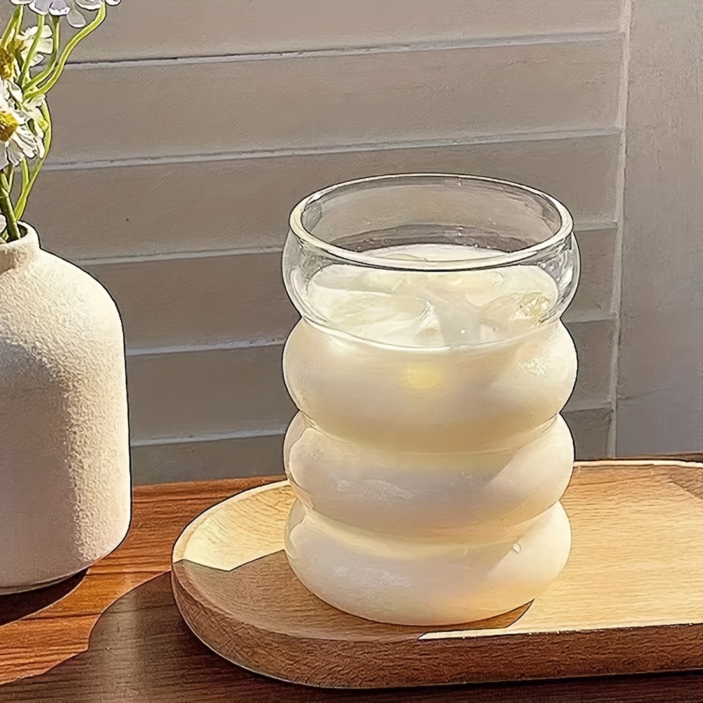 TEMU 유인형 나선 모양의 물결 디자인 유리 밀크셰이크 컵. 고 붕규산 유리 재질로 제작되어 차가운 음료, 뜨거운 음료, 스파클링 워터, 커피, 맥주, 주스, 에그노그, 우유에 적합합니다. 아이스 음료, 밀크티에 완벽합니다.