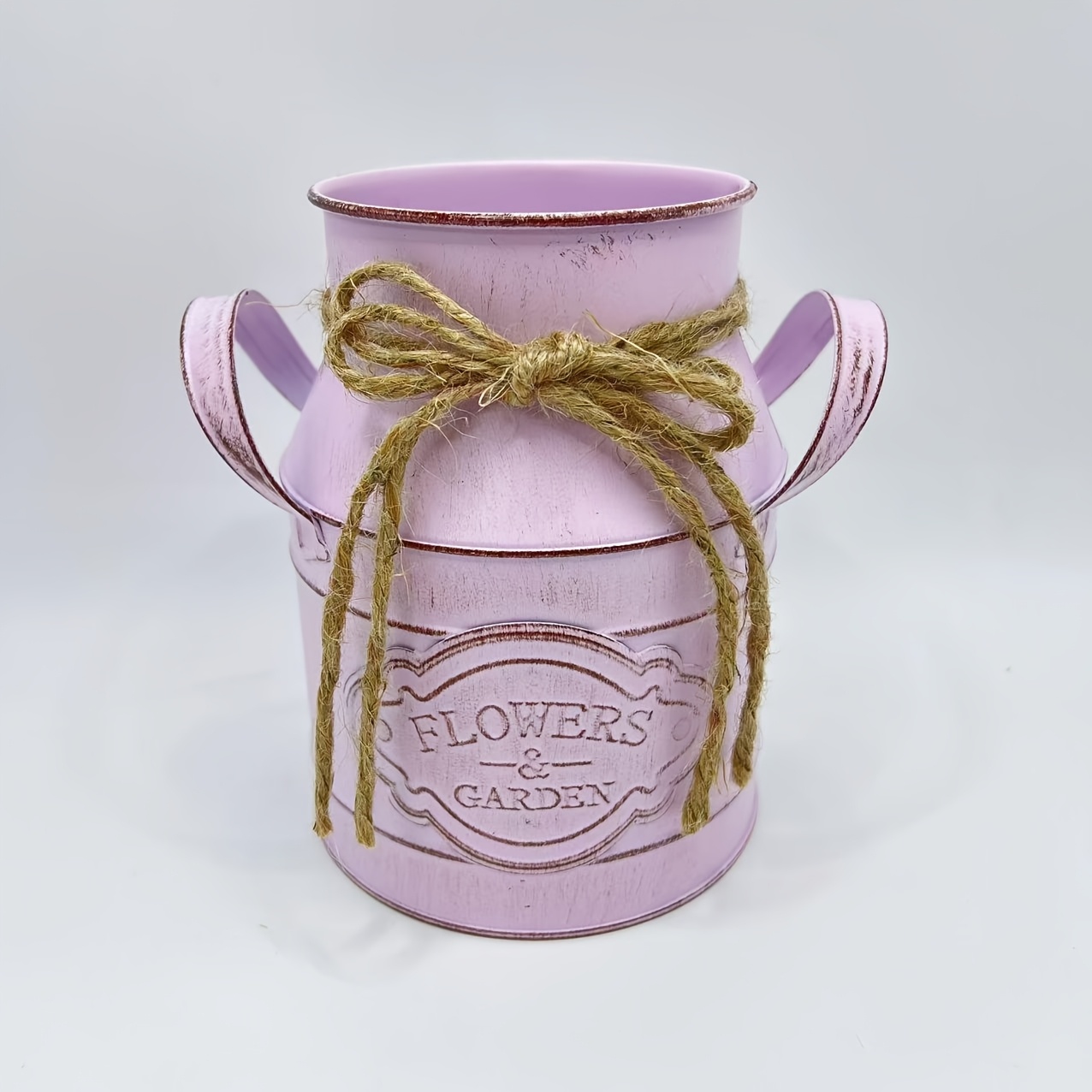 TEMU 1개 빈티지 메탈 우유통 꽃병 | "Flowers & Garden" 디자인의 6인치 꽃병, 러스틱 그린 마감, 트와인 리본 장식, 가정, 거실 또는 사무실 장식에 적합, 철제 소재