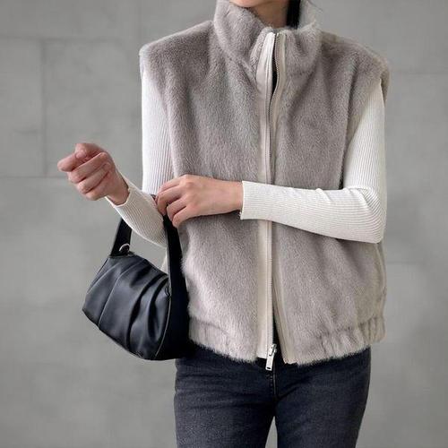 [다잇템]여성 인조퍼 FW 소프트 폴라넥 집업 조끼