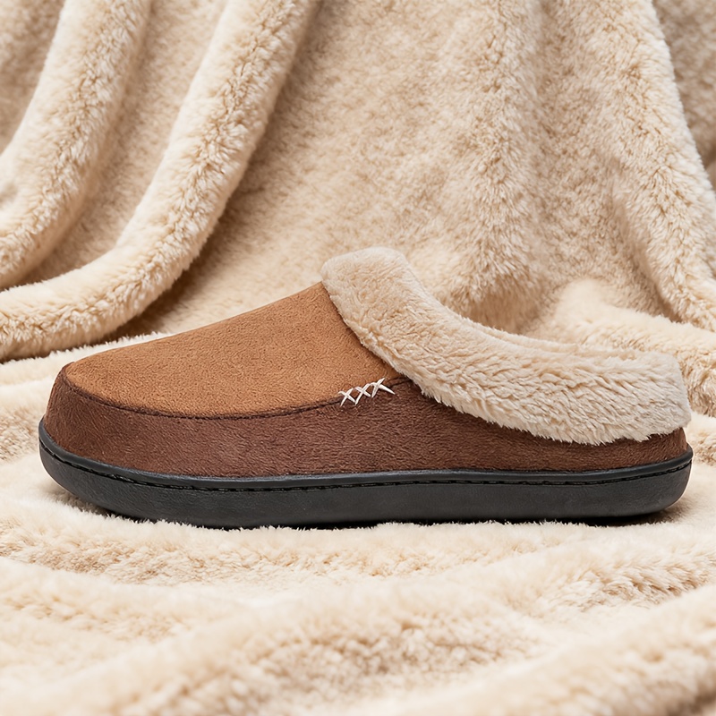 TEMU 남성용 대형 사이즈 겨울 슬리퍼 - 플러시 느낌 & EVA 미끄럼 방지 밑창 - 두꺼운 따뜻한 실내/외용 하우스 슈즈, 슬립온/오프, 그레이/브라운/카라멜 (다크 브라운) - 추운 바닥을 위한 헤비듀티 쿠션|슬리퍼