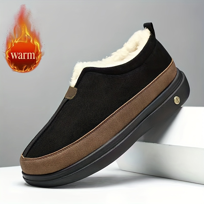 TEMU 남성용 겨울 플러시 두꺼운 밑창 슬립온 로퍼 - 따뜻한 라운드토 캐주얼 PVC 밑창 & 솔리드 컬러 디자인 (탄색) /아웃도어용 - 포근한 추위 방지 신발 선물|단화
