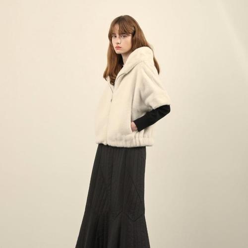 올리비아로렌 HC03 볼륨카라 인조퍼 반팔 집업 점퍼 VOB JF4W A121