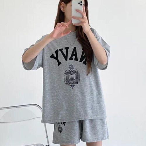 [미라클세븐]여성용 루즈핏 반팔 티셔츠와 반바지 세트 프린트 로고 디자인