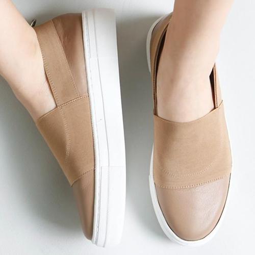 [더힐]가죽 콤비 여성여자 슬립온 운동화 스니커즈 4cm sy120