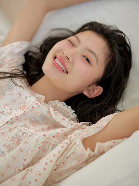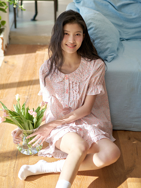 [울랄라파자마] 앤의 버찌 반팔 투피스 피치베이지 (40수)