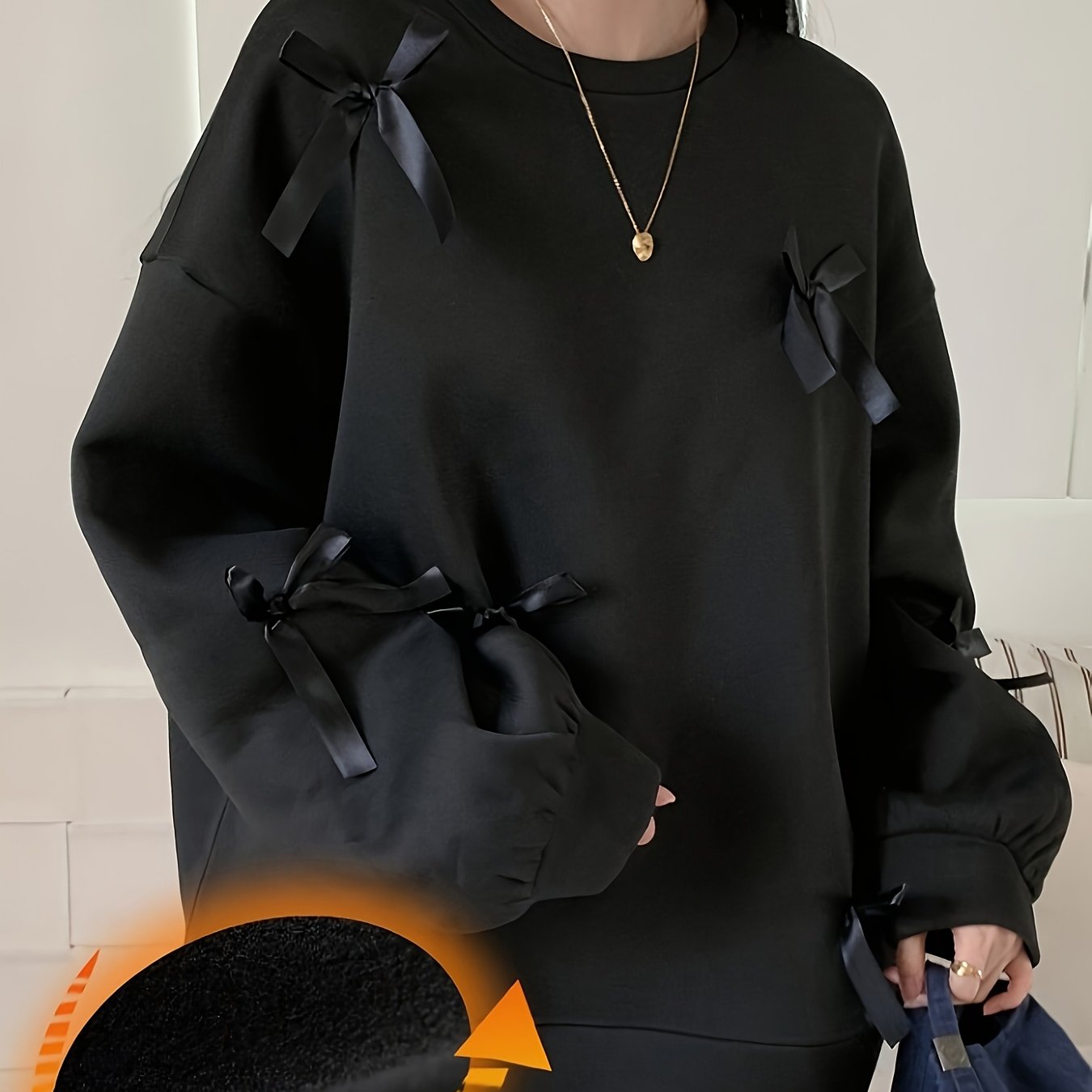 TEMU 여성용 우아한 3D 나비 리본 & 벨벳 후드티 - 부드러운 긴소매 풀오버 스웨트셔츠, 리본 디테일, 루즈핏 캐주얼 겨울 스웨터 (가을/겨울용), 포근한 의류, 가을 패션, 스타일리시 스웨트셔츠, 패션 애호가