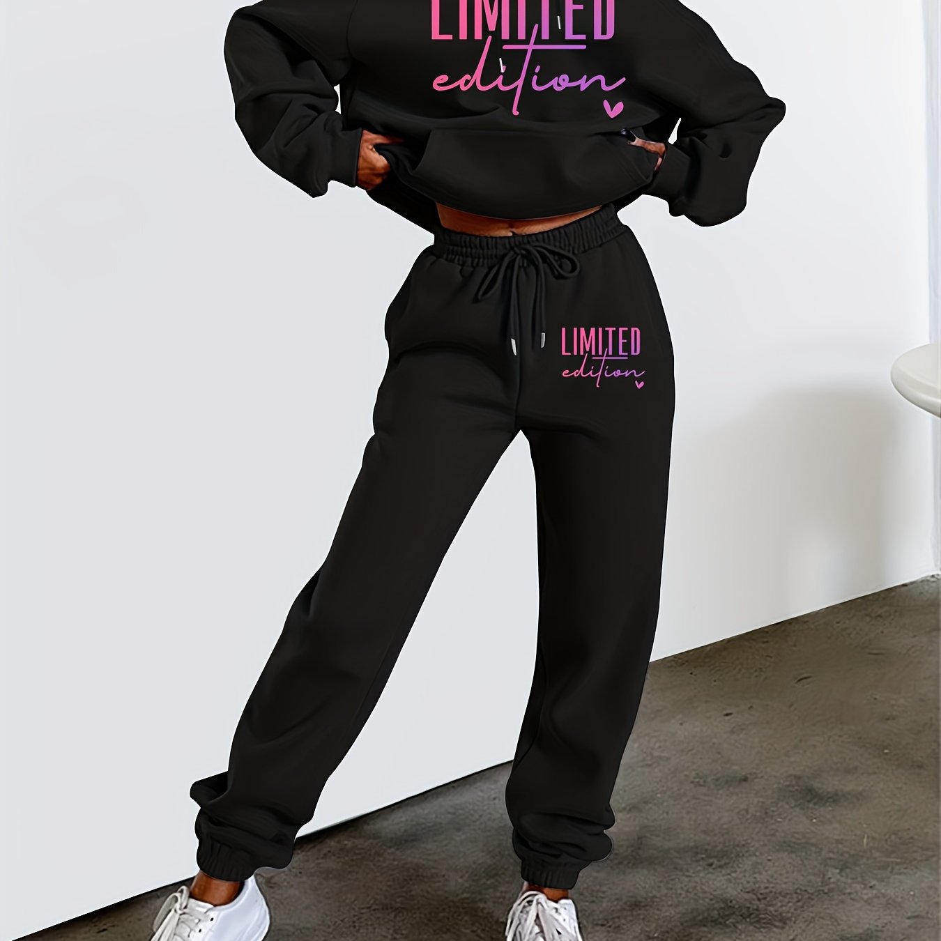 TEMU 여성 캐주얼 트렌디 후드티 세트 | 긴소매, 드로스트링, 약간의 스트레치 원단, 알파벳 패턴, 올 시즌 착용