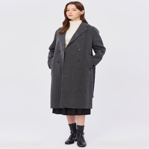 헤지스 여성 [스테디셀러][울100] 차콜그레이 더블버튼 벨티드 핸드메이드 롱 코트 (WSCO4DC02CG)